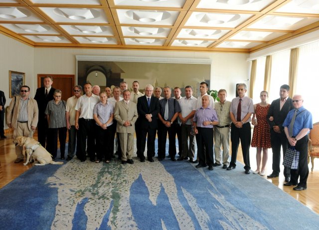 Predsjednik Republike Hrvatske Ivo Josipović primio je izaslanstvo hrvatske kuglačke reprezentacije slijepih i slabovidnih osoba, koja je na nedavno održanom Svjetskom prvenstvu u kuglanju za slijepe i slabovidne osobe , održanom u Sarajevu osvojila više medalja u ekipnim i individualnim natjecanjima. Tijekom susreta izaslanstvo ga je upoznalo sa svojim  redovitim aktivnostima, izvijestilo o uspjesima i teškoćama koje imaju sportaši s invaliditetom te o predstojećem obilježavanju Međunarodnog paraolimpijskog dana koje će se održati 8. rujna u Splitu.